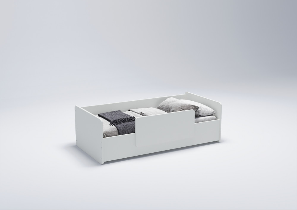 2.    Защита от травм: Кровать не имеет острых углов и обработана мягким противоударным кантом, что предотвращает возможные травмы и делает использование кровати безопасным для детей.