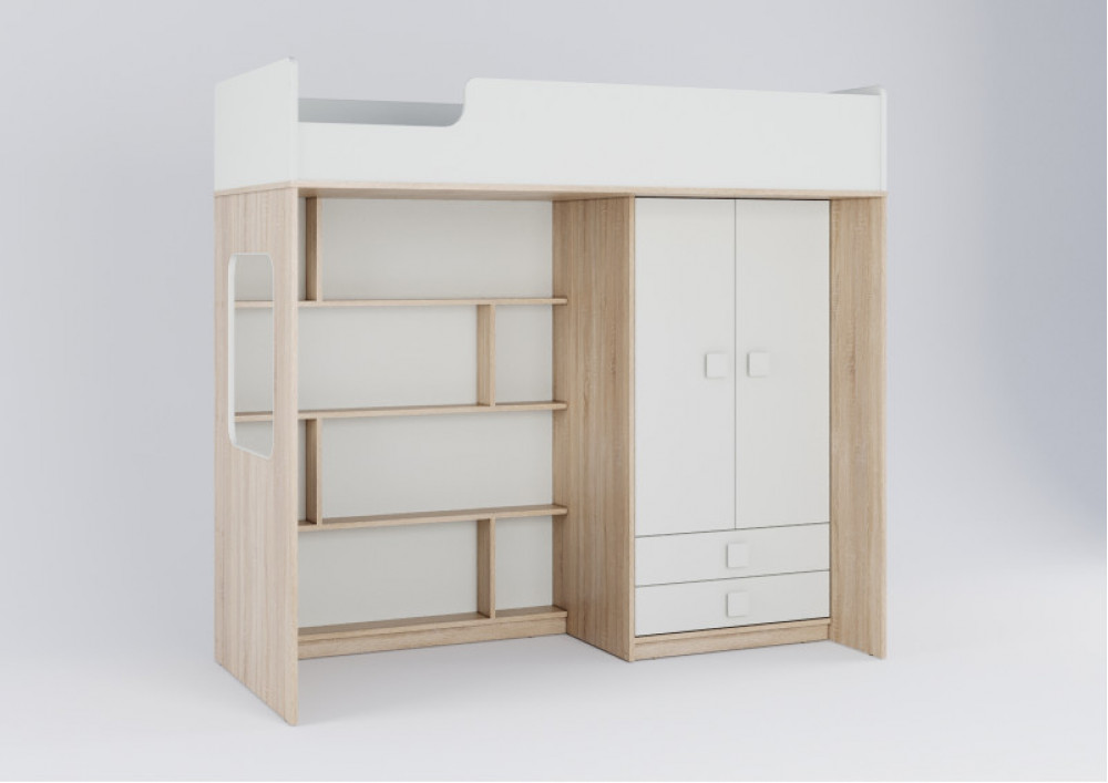 Вместительный шкаф для хранения одежды, белья,игрушек или иных вещей. Внизу шкафа располагаются выкатные ящики,в которых можно хранить отдельно мелкие предметы.Расположение ящиков позволяет ребенку легко извлекать необходимые вещи самостоятельно.