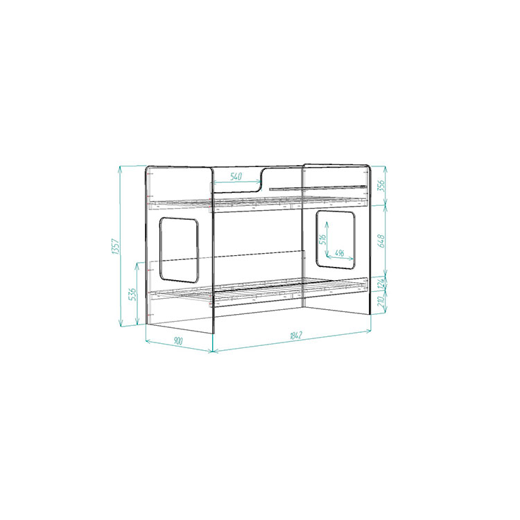 Высота обеих кроватей – всего 1350мм.Удобно - взрослый может заправить кровать,не забираясь на второй ярус!Второй ярус на уровне роста взрослого человека – гарантия свежего воздуха для ребенка.